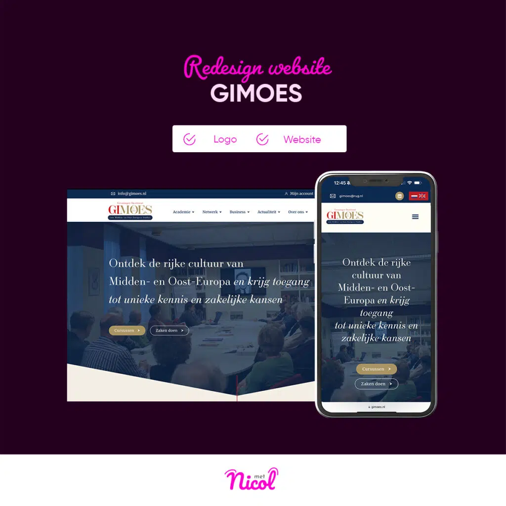 Tijdens het ontwikkelen van de nieuwe website viel op dat het bestaande logo niet meer voldeed. Het ontbrak aan professionaliteit en herkenbaarheid, wat afbreuk deed aan de uitstraling van het instituut. Daarom besloten we, in overleg met GIMOES, om het logo een update te geven.
